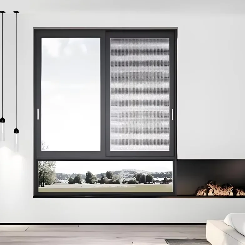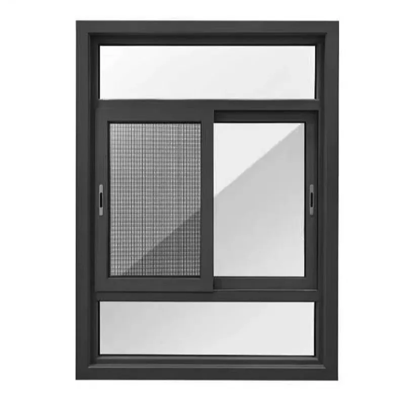 KT Custom Black Energy Efficient Double Glazed Anti-theft Aluminum Sliding Window with Mosquito Net for Villa