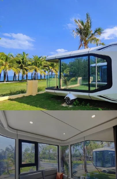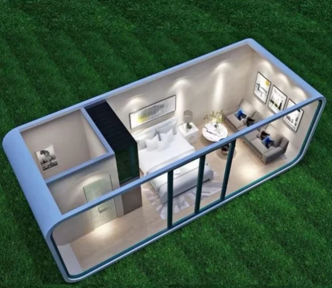 The interior space layout of the Apple Cabin is compact and flexible. It often adopts a simple and modern design style. optimizes space utilization through functional zoning. and is equipped with movable furniture. combining practicality and comfort.