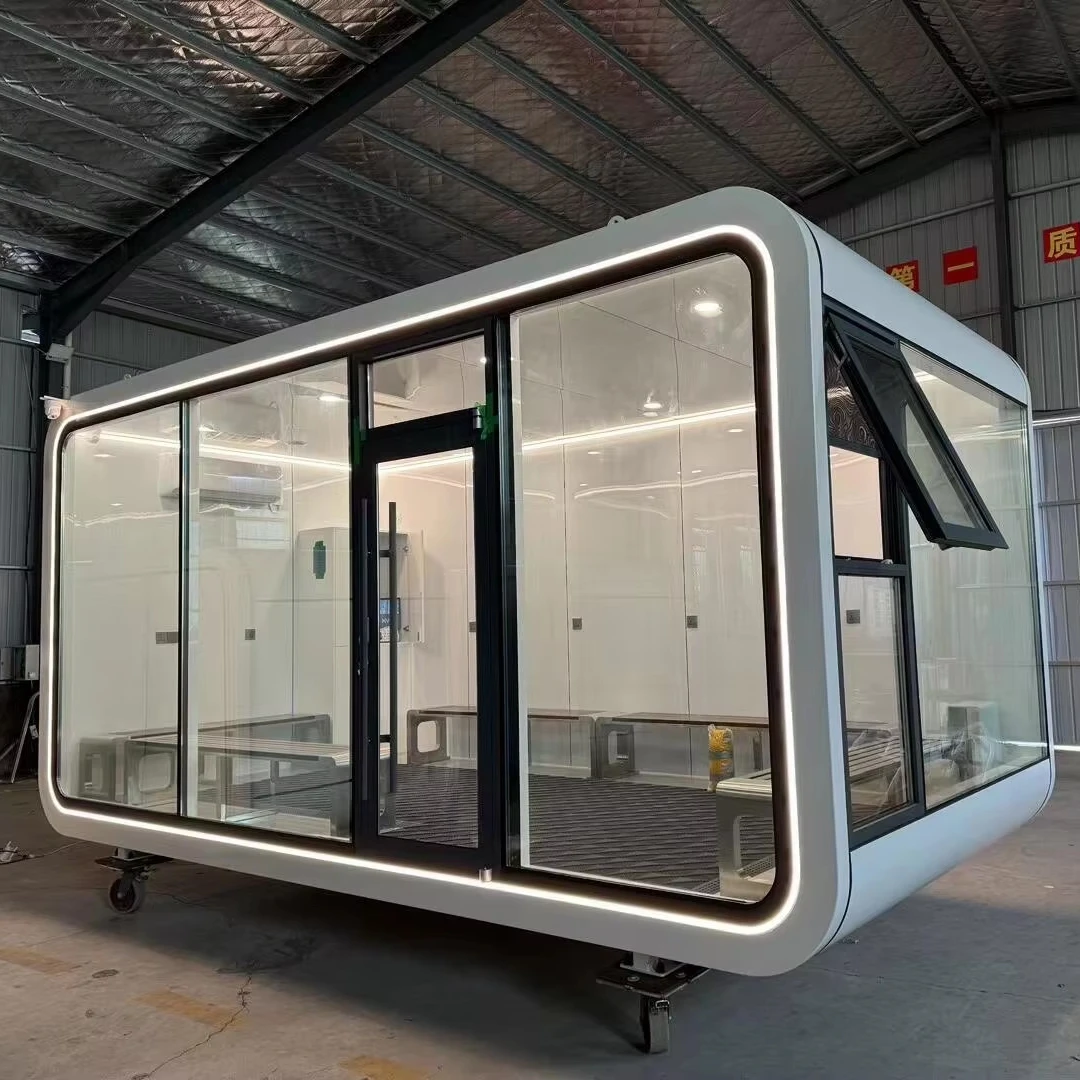The interior space layout of the Apple Cabin is compact and flexible. It often adopts a simple and modern design style. optimizes space utilization through functional zoning. and is equipped with movable furniture. combining practicality and comfort.