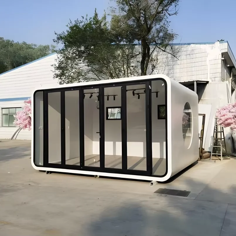 The interior space layout of the Apple Cabin is compact and flexible. It often adopts a simple and modern design style. optimizes space utilization through functional zoning. and is equipped with movable furniture. combining practicality and comfort.