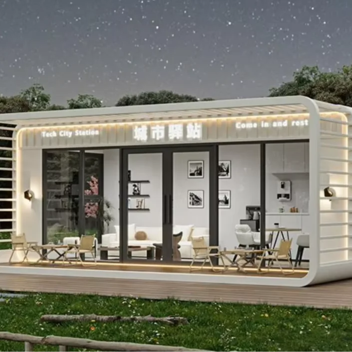 The interior space layout of the Apple Cabin is compact and flexible. It often adopts a simple and modern design style. optimizes space utilization through functional zoning. and is equipped with movable furniture. combining practicality and comfort.