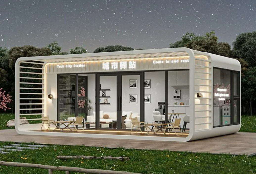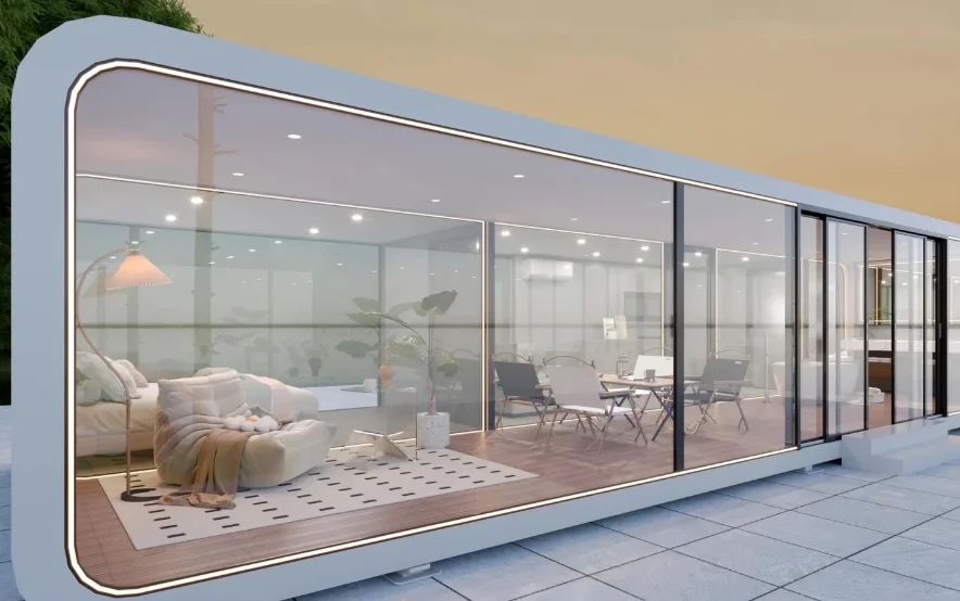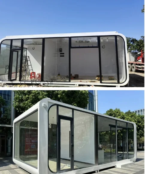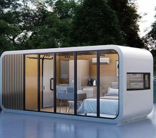 The interior space layout of the Apple Cabin is compact and flexible. It often adopts a simple and modern design style. optimizes space utilization through functional zoning. and is equipped with movable furniture. combining practicality and comfort.