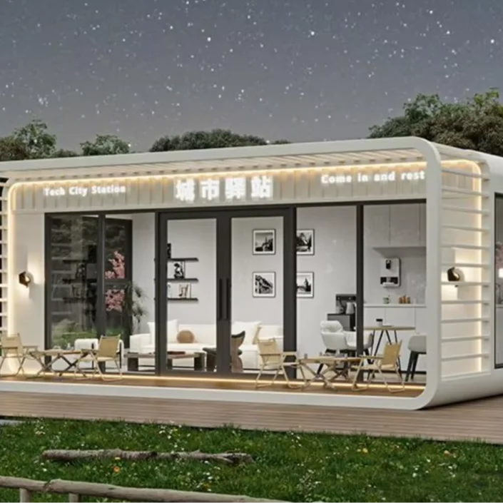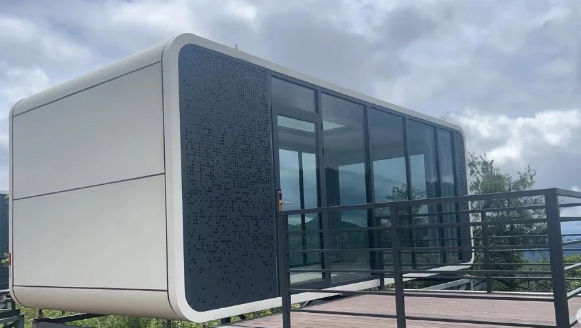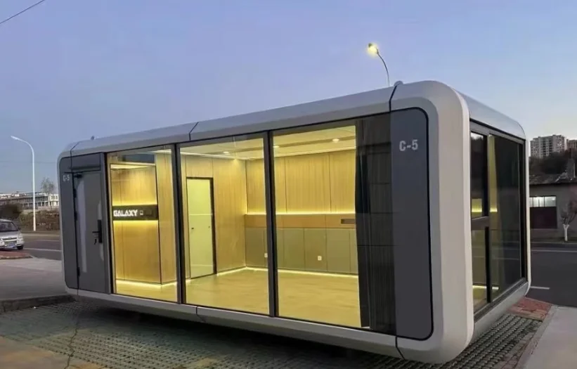 The interior space layout of the Apple Cabin is compact and flexible. It often adopts a simple and modern design style. optimizes space utilization through functional zoning. and is equipped with movable furniture. combining practicality and comfort.