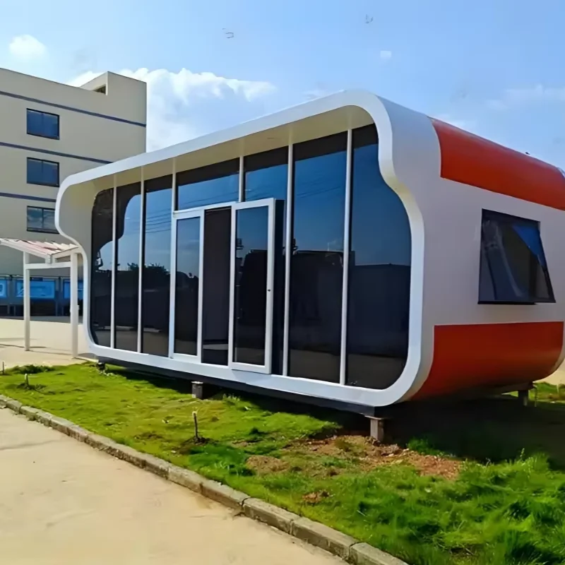The interior space layout of the Apple Cabin is compact and flexible. It often adopts a simple and modern design style. optimizes space utilization through functional zoning. and is equipped with movable furniture. combining practicality and comfort.